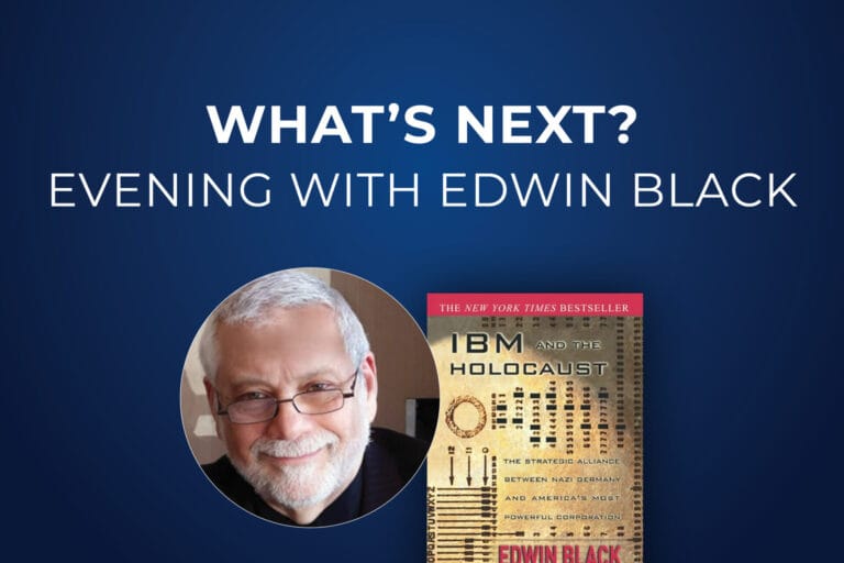 War Against the Weak, Financing the Flames, and more. In his talk, “What’s Next,” Edwin Black will explore pressing issues that shape our world today, drawing on his extensive research and unique perspective.