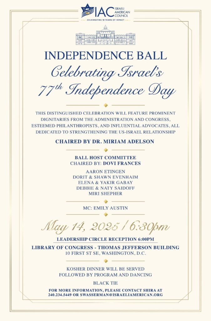 This unforgettable night will be filled with inspiration, philanthropy, and a shared commitment to Israel’s future. By supporting the Israeli-American Council (IAC), you are strengthening Jewish identity, combating antisemitism, and deepening the bonds between Jewish Americans and Israel for generations to come.